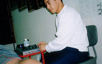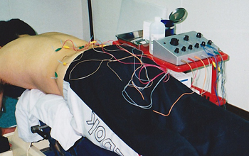 鍼を刺し針先に電極をつなげ微弱電気を流す鍼パルス通電療法も行ないます。
